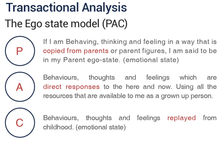 Always be overt and honest when using TA, explain the model and ask the party if they can identify their own behaviour. Don’t challenge them if they can’t take ownership as self-awareness is the key here. One of the first EQ components is self-awareness, we can’t regulate our behaviour if we don’t recognise what we are doing. TA speaks in familiar language, Parent, Adult, Child. Although the language is simple, the theory is profound and powerful. I have seen people have those wonderful transformation moments and actually take responsibility whilst looking at the model. They don’t feel blamed or judged as you have normalised the behaviour and they can now make sense of it and therefore feel motivated to move from their previously stuck position. You can now start reframing the conflict from the past, into exploring what they need going forward.